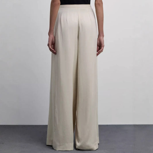 Women's Casual Elastic High Waist Loose Trousers Solid Color Wide Leg Pants